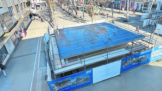 Der Blick auf den Limburger Neumarkt und einen der beiden Pavillons (Imbiss), die derzeit für sehr viel Geld saniert werden. Foto: Uwe Röndigs Uwe Röndigs
