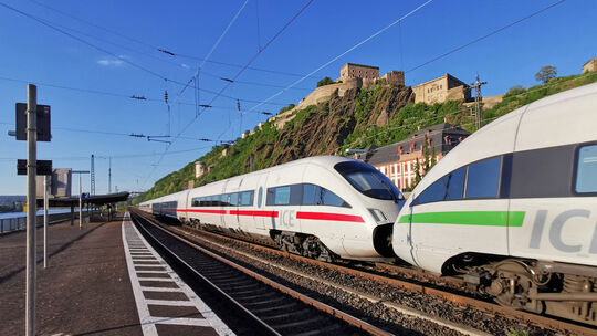 Koblenz-Ehrenbreitstein ist bislang für den Halt von Fernverkehrszügen nicht geeignet: Während der Generalsanierung sollen die Bahnsteige auf 285m Länge und 55cm Höhe umgebaut, die Unterführung erneuert und zwei Aufzüge installiert werden. 2028 werden dort auch Fernzüge halten, wenn über Monate die linke Rheinstrecke saniert wird. Hans-Peter Günther