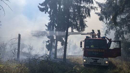 Ein Blitzeinschlag war am 12. August 2020 die Ursache für einen Waldbrand zwischen Biebern und Nannhausen. 1,5 Hektar Wald standen in Flammen. Ein Großaufgebot mit 180 Feuerwehrleuten brachte das Feuer schließlich unter Kontrolle. Thomas Torkler/Archiv