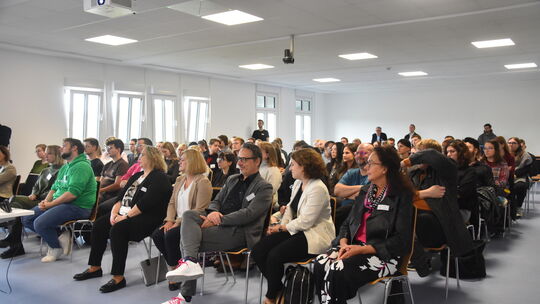 Volles Haus bei der Veranstaltung bei Optonia: Verbandsgemeindebürgermeisterin Maren Busch (2. von rechts) war eine der Besucherinnen des Karrieretags. Links von ihr sitzt Optonia-Geschäftsführer Holger Werner. Ein Thema des Tages war der Wandel des Berufs des Augenoptikers. Mariam Nasiripour