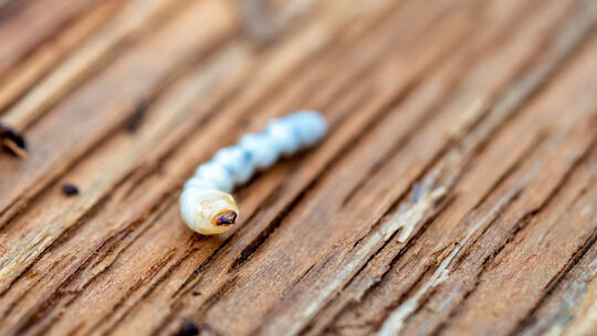 Die Larve des Eichenprachtkäfers frisst unter der Borke von Stiel- und Traubeneichen zickzackförmige Gänge in die Wachstumsschicht des Baumes. Stefan Puchner. picture alliance/dpa