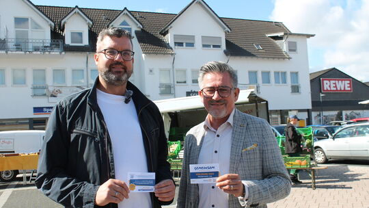 Sie hoffen auf eine gute Teilnahme bei der Verlosung für den Oktobermarkt (von links): Stadtbürgermeister Marco Ludwig und Alexander Bayer (Rotary Club). Andreas Galonska