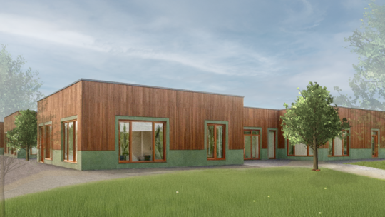 Bei der Visualisierung der Kita Klingelbach handelt es sich laut Planungsbüro um einen ersten Entwurf, der im Zuge der Planung weiter detailliert wird. Studio GGP (GGP GmbH)