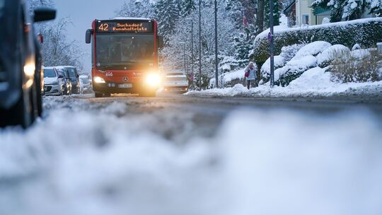 Noch ist der Busverkehr von der winterlichen Witterung nicht so stark in Mitleidenschaft gezogen worden, dass der Schulbetrieb gelitten hätte. Eine Ausnahme gab es wohl bei der Karl-von-Ibell-Schule in Diez. Marcus Brandt/dpa (Symbolbild)