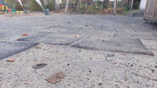 Der Fallschutz auf dem Außengelände der Kita Kinderhafen hat seine besten Zeiten hinter sich. Jennifer Kolbe