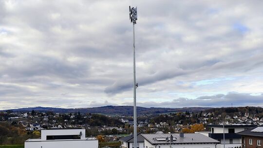 Kaum zu übersehen: Ein echter „Hingucker“ ist der rund zehn Meter hohe Sirenenmast „In den Wingerten“. Ein halbes Dutzend weiterer Anlagen sind bereits installiert, mehr folgen noch.