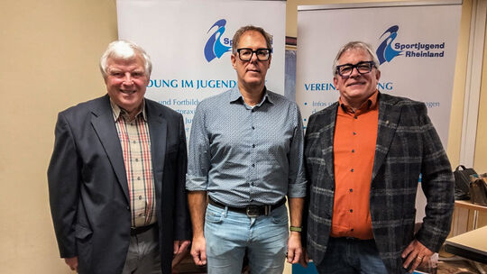 Sportkreisvorsitzender Werner Jäger (links) gratulierte Andreas Doß (Mitte) zur Wiederwahl als Jugendsportwart und Kai Schmidt zum stellvertretenden Jugendsportwart. Rolf-Peter Kahl