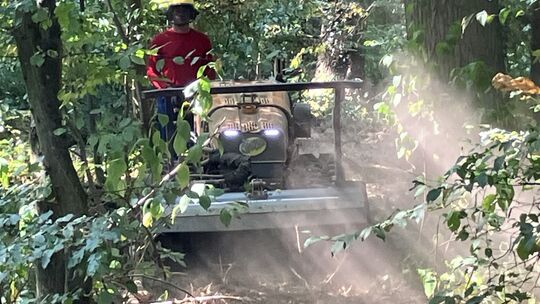 Es staubt: Mit einer Mulchraupe wurden Schneisen im Unterholz für die aufzustellenden Gatter geschaffen. Johannes Koenig