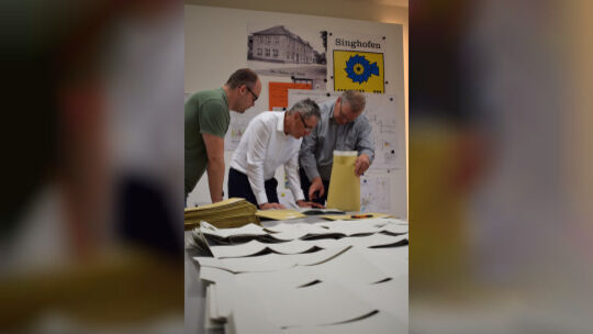 FWG-Urgestein Ulrich Münch (Mitte) zählt am vergangenen Sonntag die Stimmen für die Europawahl aus. Bernd-Christoph Matern