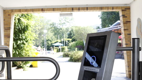 An diesem Scanner müssen die überwiegend online erworbenen Karten für das Nassauer Freibad vorgehalten werden. Foto: Carlo Rosenkranz Carlo Rosenkranz