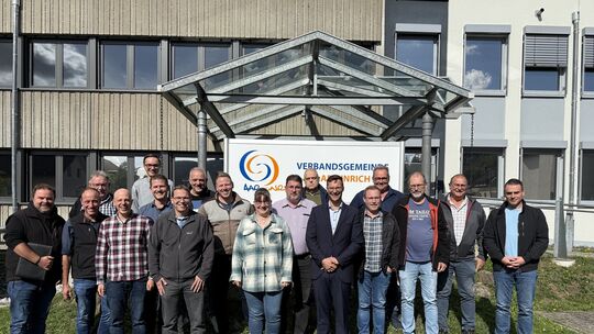 Die Mitarbeiter der VG Aar-Einrich gruppierten sich im Rahmen des zweitägigen Krisenmanagement-Seminars zum Erinnerungsfoto mit Referent Alexander Röser. Christopher Kahl