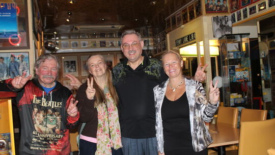 An dem von Ernst Heilig (2. von rechts) organisierten Gastro-Unternehmerstammtisch nahmen Stephanie Körver (2. von links) und Michaela Becker (rechts) teil. "Yellow Submarine"-Inhaber Axel Ketterer (links) freute sich über den Besuch und führte durch sein Museum. Ulrike Bletzer. Bletzer Ulrike