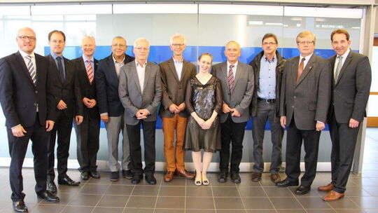 Feierten die Eröffnung des Medizinischen Versorgungszentrums zusammen mit Gästen aus der Kommunal- und Landespolitik: Dr. Dieter Hoffmann (6. von links) mit seinen Kollegen Miguel Palacios und Werner Schwehn (4. und 5. von links). ​