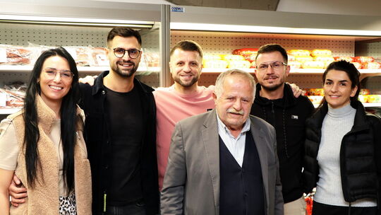 Der neue „Albi Market“ in Siershahn ist ein reiner Familienbetrieb, der mit dem Markt unter anderem auch den Landsleuten aus dem Kosovo und Albanien in unserer Region ein wenig Heimatgefühl vermitteln will. Das Foto zeigt die drei Brüder Agron, Ismajl und Fidan Dervishaj (hinten, von links) mit ihren Ehefrauen Carla (links) und Mirjeta. Vorne im Bild ist Vater Gjemajl zu sehen. Hans-Peter Metternich