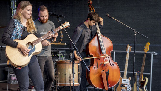 Frontfrau Hanne Kah gibt der Band den Namen und die (meisten) Texte. Zusammen mit Schlagzeuger Malte Schmidt (Mitte), Bassist Niklas Quernheim und Gitarrist Patrick Jost (nicht im Bild) machte sie den Gästen des Bad Marienberger Sommerfestivals ein musikalisches Geschenk. Röder-Moldenhauer
