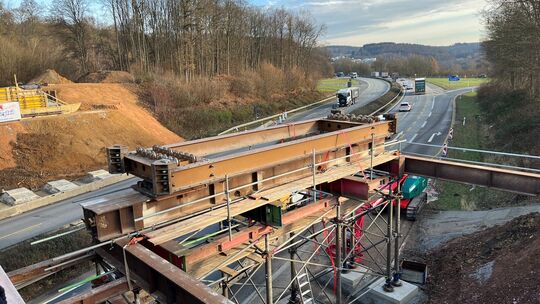 Eine provisorische Brücke, über die ab Februar täglich rund 6000 Fahrzeuge rollen werden, entsteht derzeit bei Höhr-Grenzhausen. Die Behelfsbrücke über die A48 soll im Jahr 2026 den Verkehrsfluss aufrechterhalten, bis die neue Brücke fertig ist.
