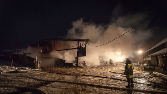 Sessenhausen - Mehrere Feuerwehren waren beim Brand einer landwirtschaftlichen Lagerhalle im Einsatz. Kurz nach 1 Uhr am Montag sahen Beamte der Autobahnpolizei Montabaur, dass ein Gebäude des Aussiedlerhofes Kutscheid in der Gemarkung Sessenhausen in Flammen steht. Über die DRK-Leitstelle Montabaur wurden die umliegenden Feuerwehren alarmiert. Die Beamten weckten außerdem die Bewohner des Hofes.