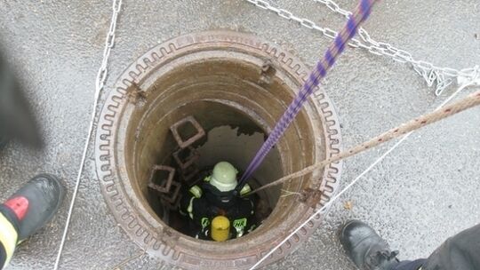 Mit Atemschutz ging es für die Feuerwehrleute hinab die Kanalisation in Kleinholbach, um dem verdächtigen Geruch auf den Grund zu gehen. Freiwillige Feuerwehr Nentershau