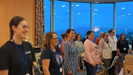 Schon beim Einsingen sind die Sängerinnen mit Begeisterung bei der Sache. Alfred Labonte