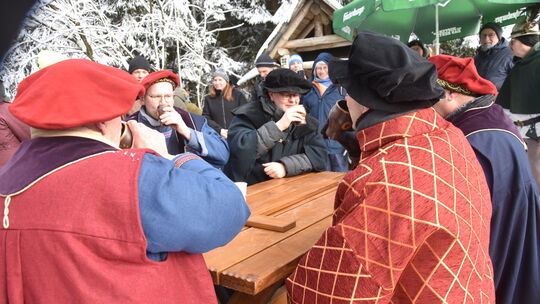 Bei kalten Temperaturen hatten viele Zuschauer an der Rechtsprechung am Vierherrenstein Spaß. Dabei legten sich die kostümierten Mimen tüchtig ins Zeug, bevor gefeiert werden konnte.