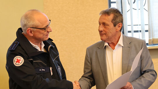 Über 40 Jahre ist Armin Georg unterwegs, um nicht nur Erste- , sondern auch organisatorische Hilfe beim DRK zu leisten. Dafür überreichte ihm nun Landrat Achim Schwickert die Ehrennadel des Landes Rheinland-Pfalz in einer kleinen Feierstunde.