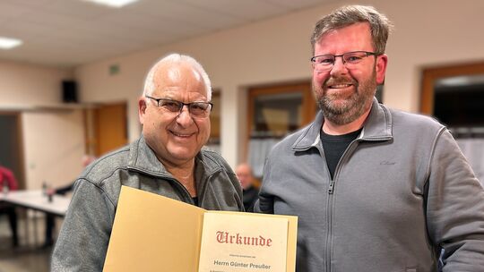 Für seine langjährigen Verdienste um den Förderverein der Freiwilligen Feuerwehr Sainscheid wurde Günter Preußer von seinem Nachfolger als Vorsitzender, Gerald Meißner, zum Ehrenvorsitzenden ernannt. Markus Eschenauer