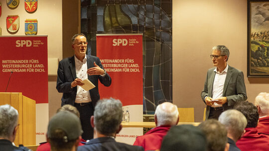 Landtagspräsident Hendrik Hering und der rheinland-pfälzische Innenminister Michael Ebling folgten der Einladung des SPD-Ortsvereins Westerburger Land. Nach deren Impulsvorträgen zum Thema Ehrenamt und Katastrophenschutz gab es eine Fragerunde.
