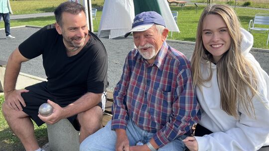 Spaß auf der Bahn mit der Kugel bei herrlichem Herbstsonnenwetter: Mit dabei ist ein Promi, der immer wieder gerne in den Westerwald kommt.