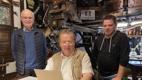 Einmal über die Schulter geschaut: Fritz und Frank Wirdeier (rechts) bei der Vorstellung des Jahreskalenders 2026 durch den Herausgeber Ulrich Schneider. Rolf-Dieter Rötzel