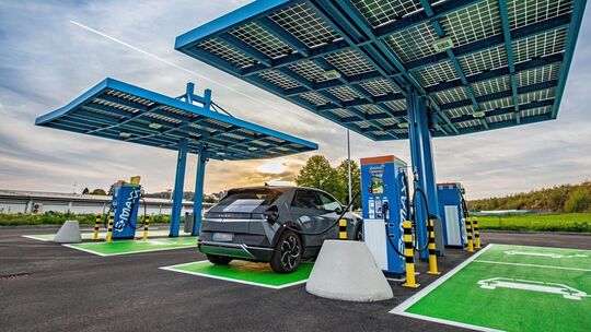 Insgesamt vier Ladesäulen der Firma Enercharge mit jeweils zwei Ladepunkten mit 320 Kilowatt pro Säule stehen für E-Fahrzeuge an der Stromtankstelle zur Verfügung. Hinzu kommt eine Ladesäule, die speziell zum Laden von Bussen, Lkws, Wohnmobilen oder auch Transportern geeignet ist.