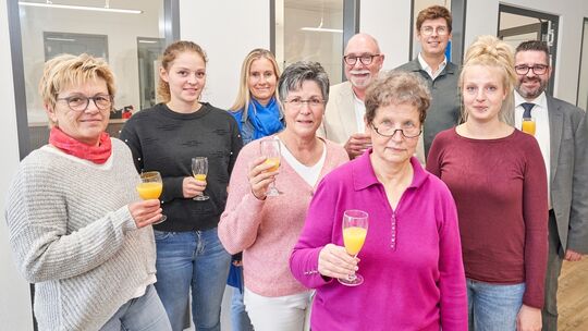 Sie steht jetzt ganz vorne, auch im Team der Landarztpraxis plus in Montabaur, die künftig von angestellten Ärzten aus den BBT-Verbundkliniken unterstützt wird: Dr. Claudia Bellut. Im Kreis des Praxisteams verabschiedete Jérôme Korn-Fourcade (rechts) ihren Mann Dr. Klaus Bellut (Mitte). Foto: Sascha Ditscher Sascha Ditscher