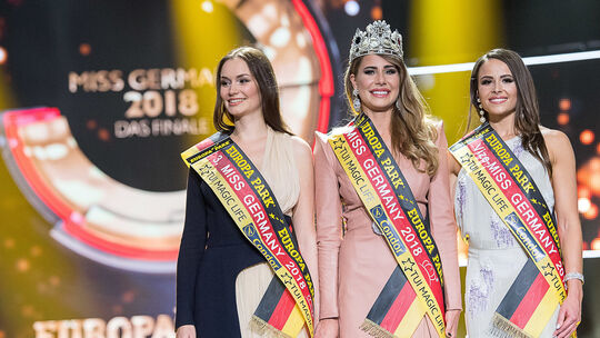 Nach ihrem Titelgewinn der „Miss Westdeutschland“ schaffte es Alena Krempl (rechts) aus Montabaur auch bei der „Miss Germany“-Wahl im Europapark Rust auf das Siegertreppchen. Geschlagen geben musste sie die 24-Jährige lediglich Anahita Rehbein (Mitte) aus Stuttgart. Foto: dpa/Sebastian Gollnow dpa