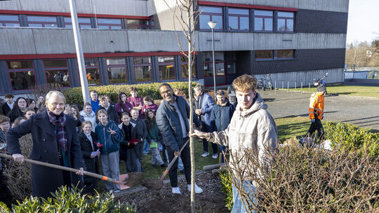 Zusammen mit dem früheren Fußballprofi Cacau und der Ersten Kreisbeigeordneten Gabriele Wieland pflanzte Romeo Walter, Schülersprecher der Realschule plus/Fachoberschule Hachenburger Löwe, zum Auftakt der Aufnahme in das Netzwerk "Schule ohne Rassismus - Schule mit Courage" eine Elsbeere als Wertebaum. Röder-Moldenhauer