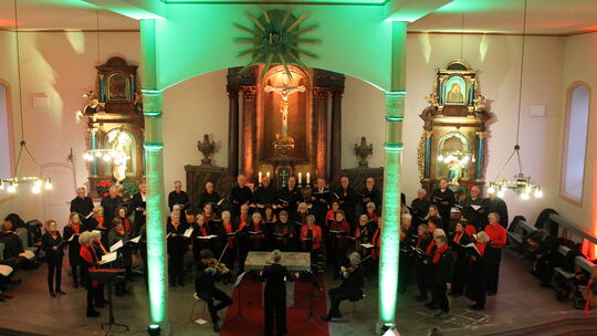 Stimmungsvoll beleuchtet war die Kirche St. Johannes der Täufer in Welschneudorf beim Konzert der heimischen Eintracht Musica Viva mit dem Montabaurer Folklore-Chor. Helmut Rosbach