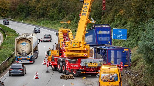 Bei einem schweren Verkehrsunfall auf der A48 ist am Samstagmorgen ein Speditionslastzug aus dem Ostallgäu bei Weitersburg umgestürzt. Die Bergung zog sich bis in den Nachmittag hinein. Andreas Egenolf