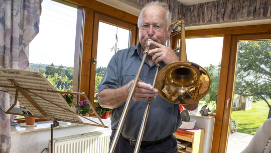84-Jähriger bläst noch immer kräftig seine Zugposaune - Seit 70 Jahren ist er aktives Mitglied im MV Neuhochstein-Schönberg