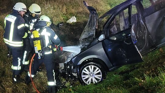 Bei dem Unfall nahe Schenkelberg wurde der Wagen der vorfahrtberechtigten Frau in den Straßengraben geschleudert und brannte dort vollständig aus. Ralf Steube