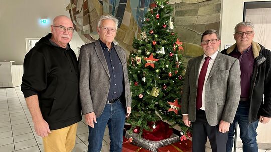 Ernste Gesichter am Rande der Stadtratssitzung (von links): Jakob Milles, Joachim Letschert , Peter Striege und Ralf Schmidt vom SPD-Gemeindeverband stellen sich ganz klar vor ihren Parteigenossen Ludwig Gerhards. Camilla Härtewig