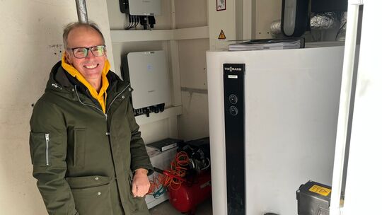 Ortsbürgermeister Sven Normann neben der neuen Heizung im Sportlerheim. Thorsten Ferdinand