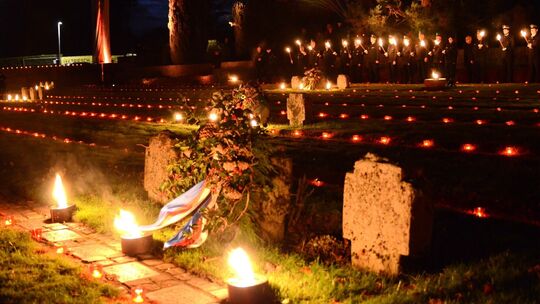 Mehr als 1100 Kerzen und viele Fackeln erinnerten bei der zentralen Feierstunde zum Volkstrauertag an die mehr als 1000 auf dem Ehrenhain Westerwald bestatteten Opfer des Zweiten Weltkrieges. Markus Müller