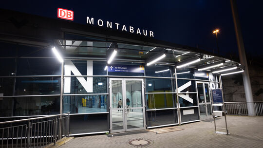 Der Eingang des ICE-Bahnhofs in Montabaur. Lena Bongard