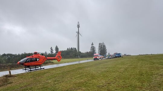 Zu einem schweren Verkehrsunfall zwischen einem Auto und einem LKW-Gespann kam es auf der Kreisstraße 57 bei Höhn. Ein Rettungshubschrauber brachte die schwer verletzte Frau in eine Klinik. Niklas Mohr