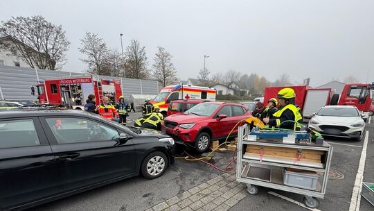 Rettungseinsatz in Westerburg: Westerburg: Frau auf Parkplatz von zwei Pkw eingeklemmt