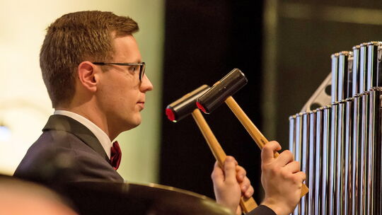 Marcel Schuster sagt über das Konzertorchester Koblenz: „Hier habe ich die Möglichkeit, als Amateurmusiker Literatur für Profi-Orchester zu spielen." Ulrike Anhamm