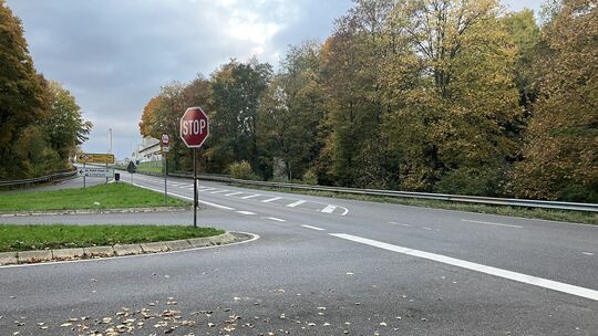 Zufahrt auf die L307 aus Nauort und Alsbach kommend mit dem Blick in Richtung Ortseinfahrt Höhr-Grenzhausen, von wo das eine der Unfallfahrzeuge kam, während das zweite, vollbesetzte Fahrzeug auf die Straße einbog. Birgit Piehler