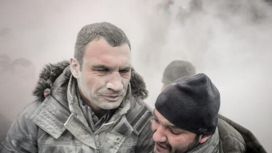 Kein Pardon für einen Boxweltmeister: Auch Oppositionsführer Vitali Klitschko geriet bei den Auseinandersetzungen in Kiew zwischen die Fronten. Er wurde mit einem Feuerlöscher besprüht und musste sich daraufhin zurückziehen. Foto: dpa
