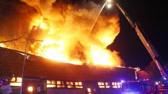 Die Feuerwehr war in der Nacht mit rund 30 Fahrzeugen und bis zu 160 Einsatzkräften ausgerückt. Wegen des eingestürzten Dachs habe es Schwierigkeiten bei den Löscharbeiten gegeben, sagte ein Sprecher. Erst am Morgen sei das Feuer unter Kontrolle gewesen. Noch am Mittag waren die Einsatzkräfte damit beschäftigt, immer wieder aufflammende Glutnester zu löschen. Zwei Feuerwehrleute erlitten leichte Verletzungen.