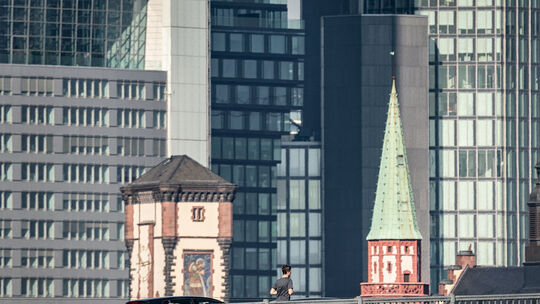 Ein Jogger auf der Flößerbrücke in Frankfurt.