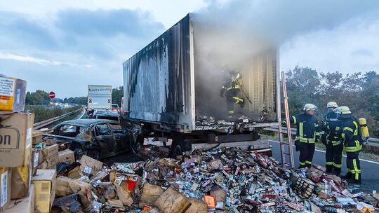 „Die Zigaretten sind in Rauch aufgegangen, deswegen ist der Schaden so hoch“, sagte der Sprecher. Er liege bei mehr als 500.000 Euro – ohne die Einberechnung der Fahrzeugschäden. Diese seien noch unklar.