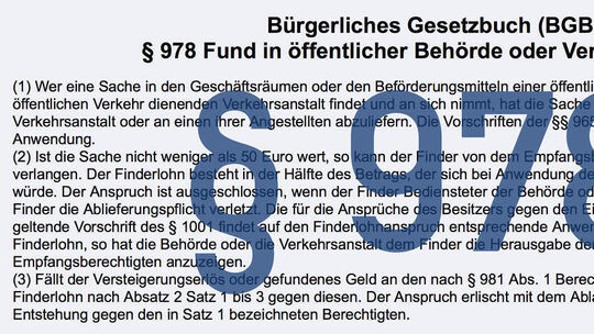 Außerdem halbiert sich wegen der Sonderregelung der gesetzliche Finderlohn von drei Prozent. Statt wie üblich mit 600 wird die Frau mit 300 Euro für ihre Ehrlichkeit belohnt. „Ich habe das Gefühl, als ehrliche Finderin auch ein bisschen die Dumme zu sein“, sagte die Frau dem „Hamburger Abendblatt“ (Donnerstag). Die Geldscheine hatten dem Bericht zufolge vergangenen Dienstag säuberlich gerollt in einer bunten Plastiktüte auf einem Sitz gelegen.